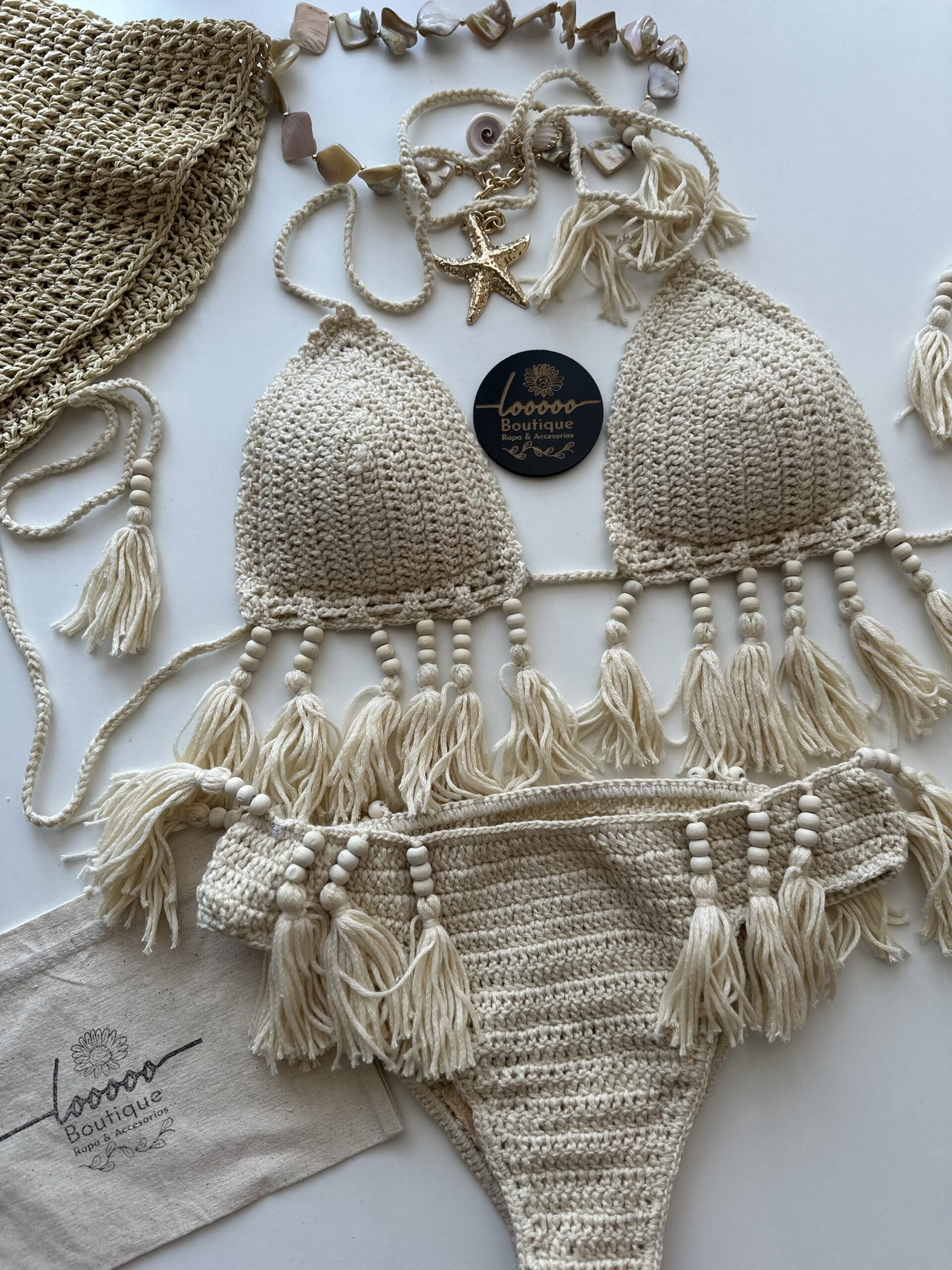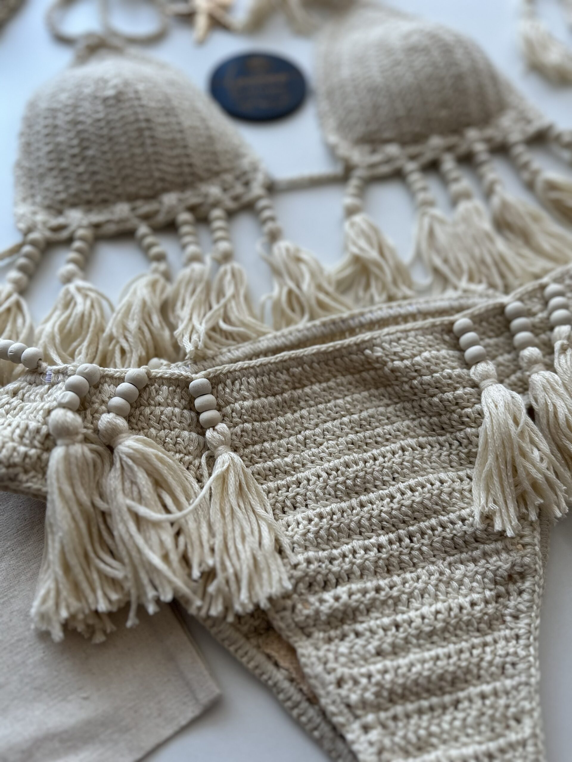 Sexy Bikini con flecos en color crudo, edición limitada.
