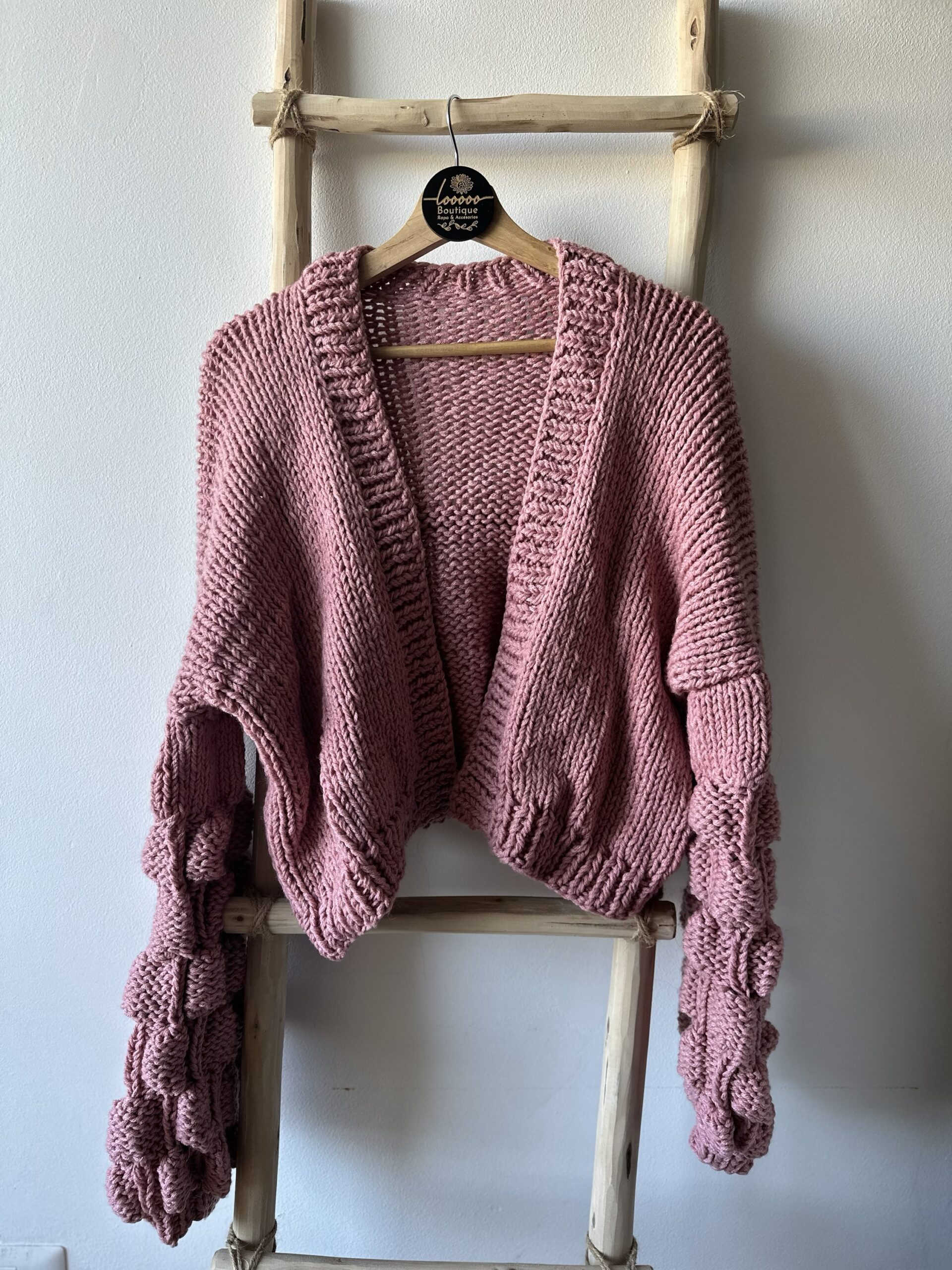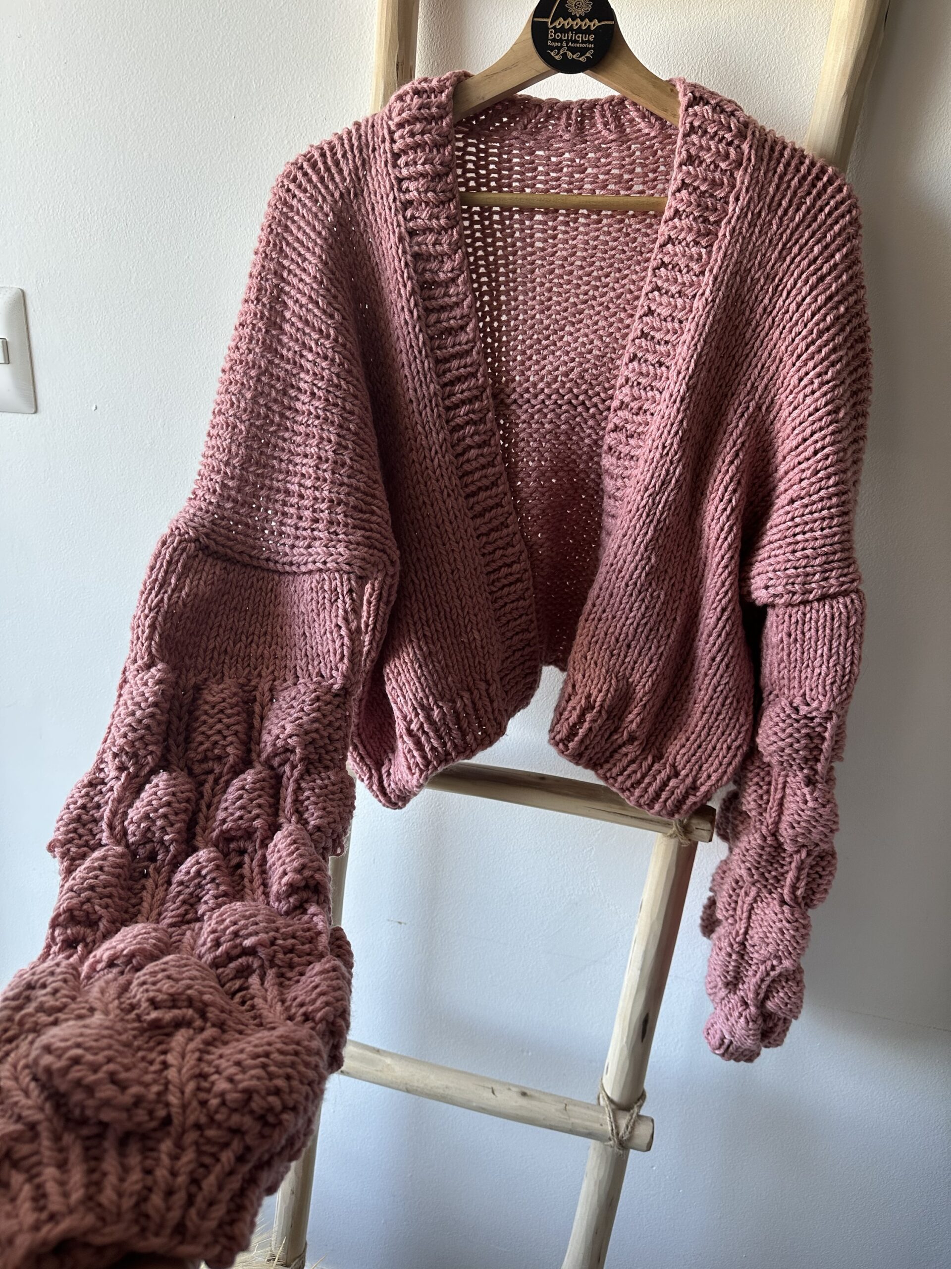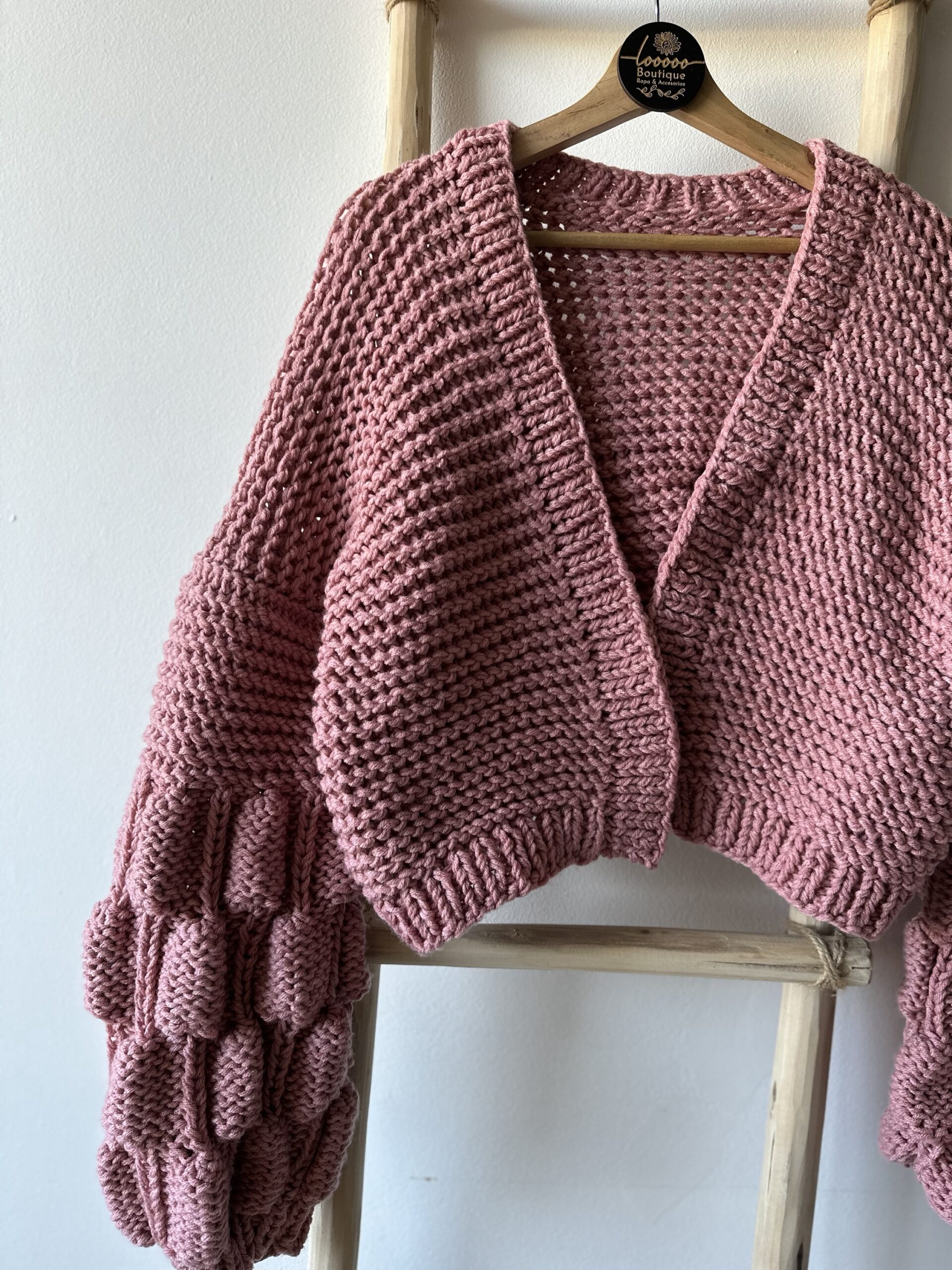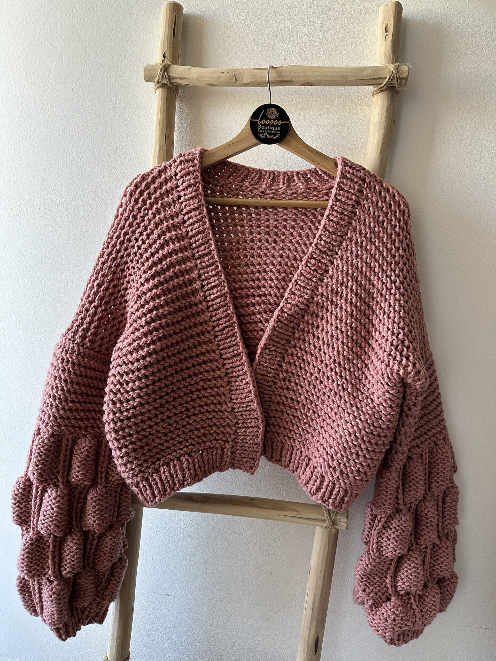 En material acrilico un cardigan burbuja bàsico, en rosa palo que combina con todas las estaciones (solo disponible en color rosa palo)