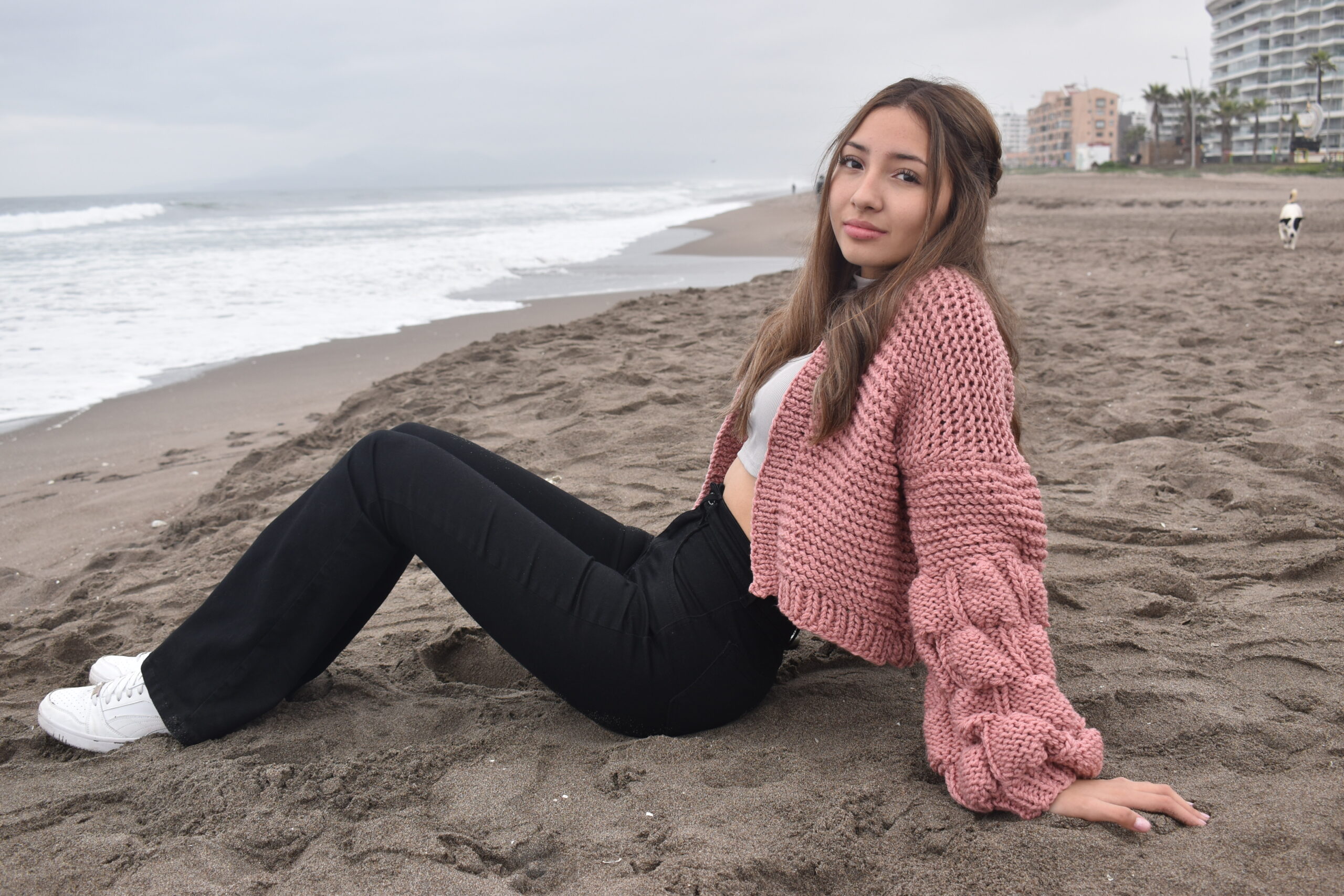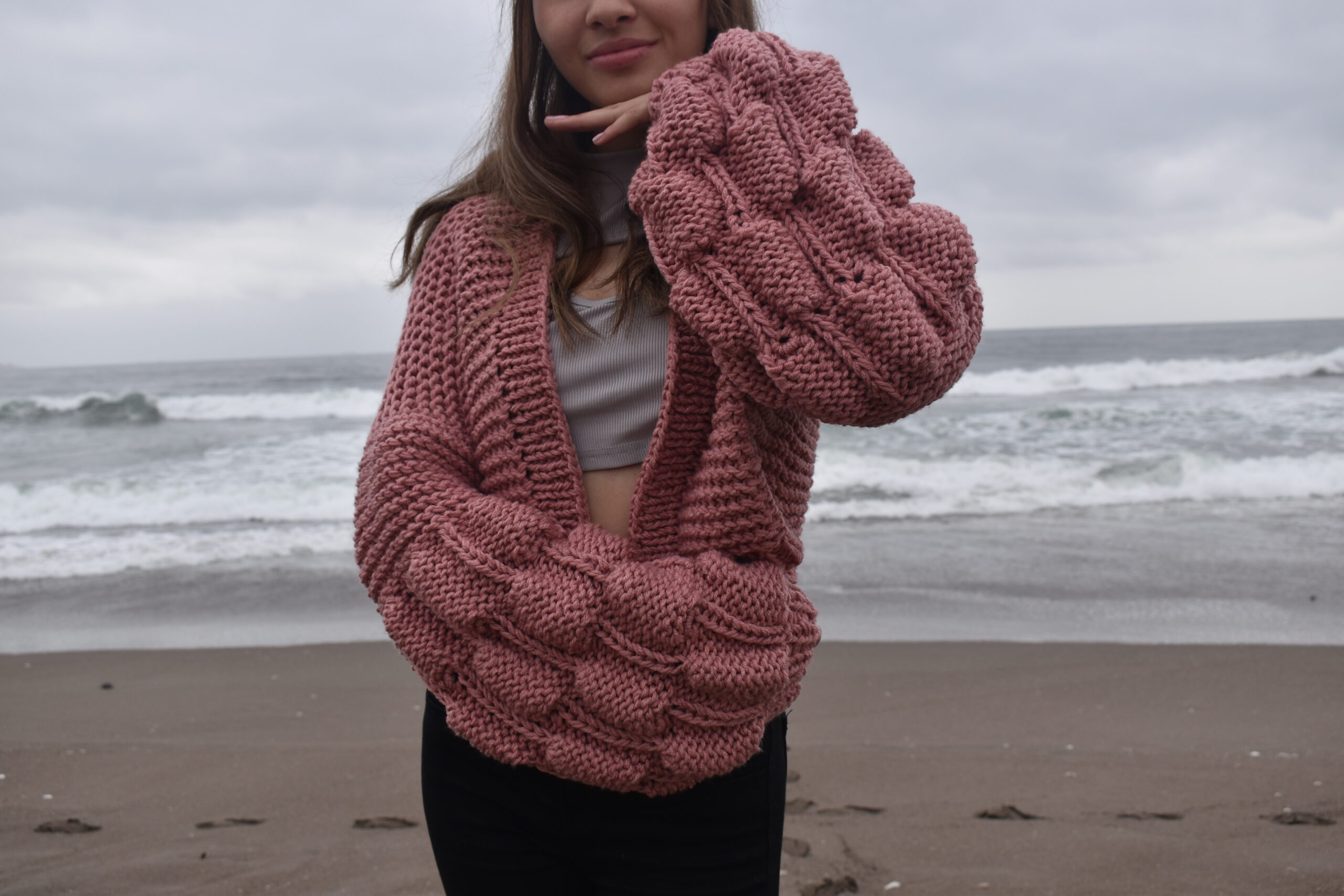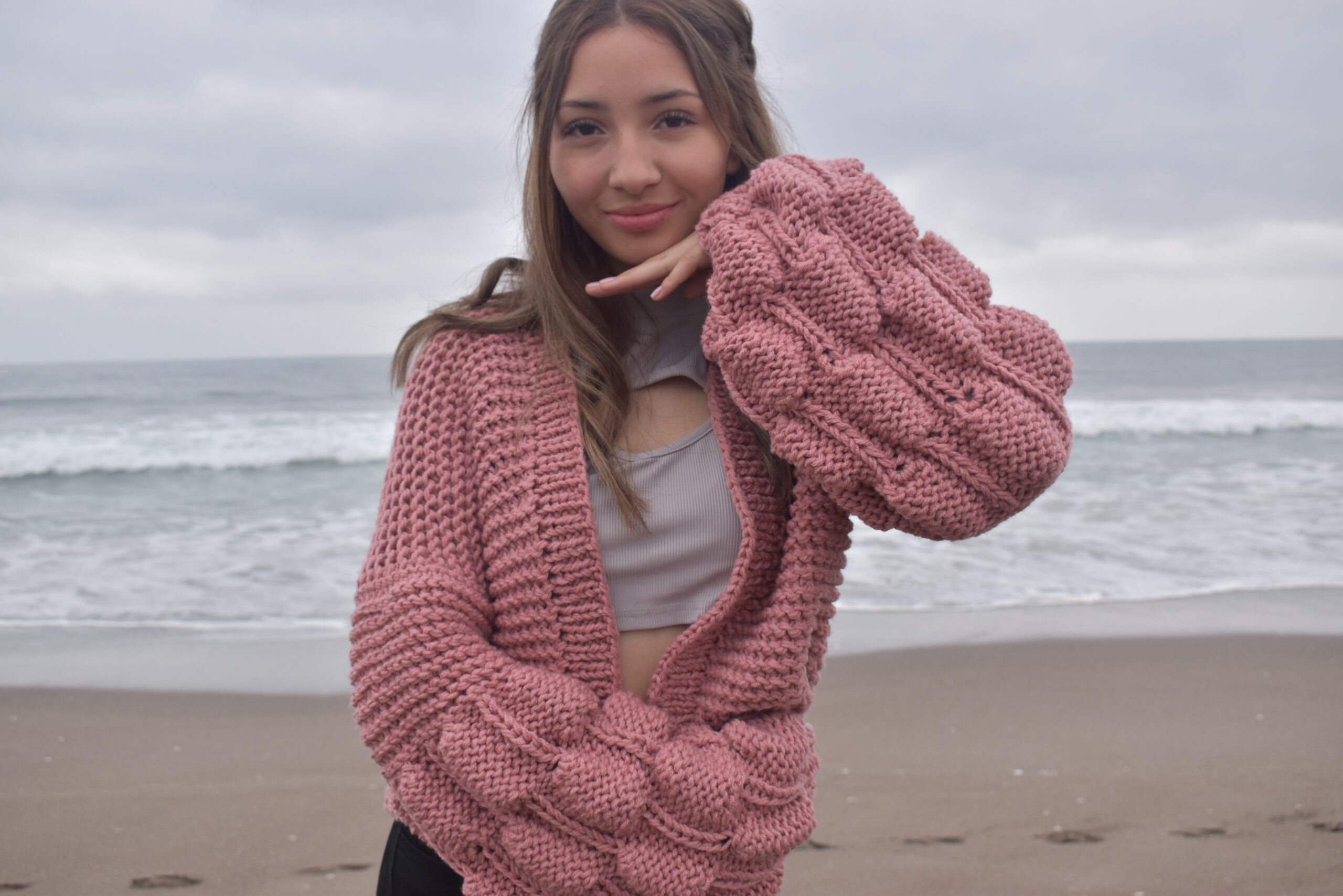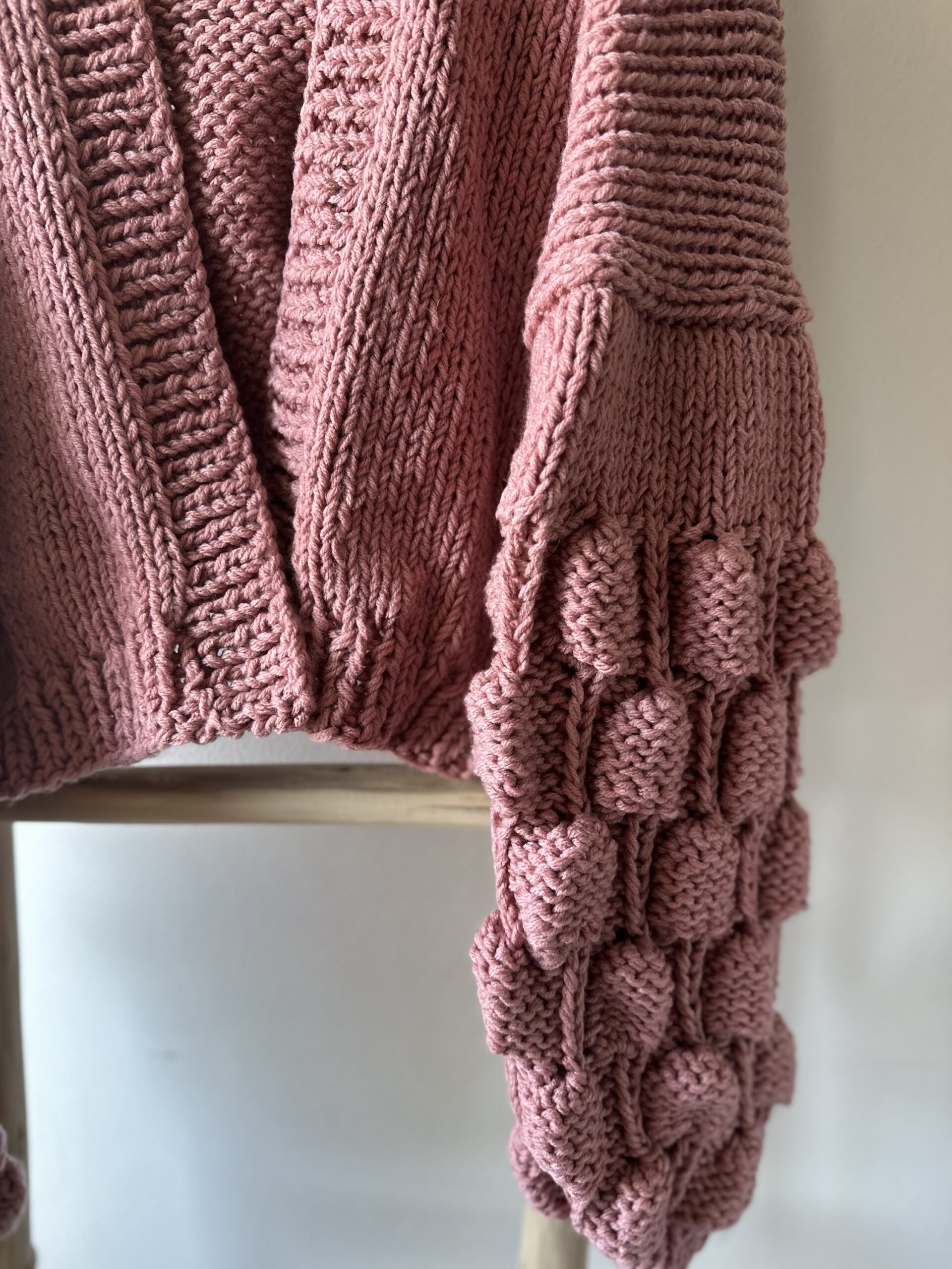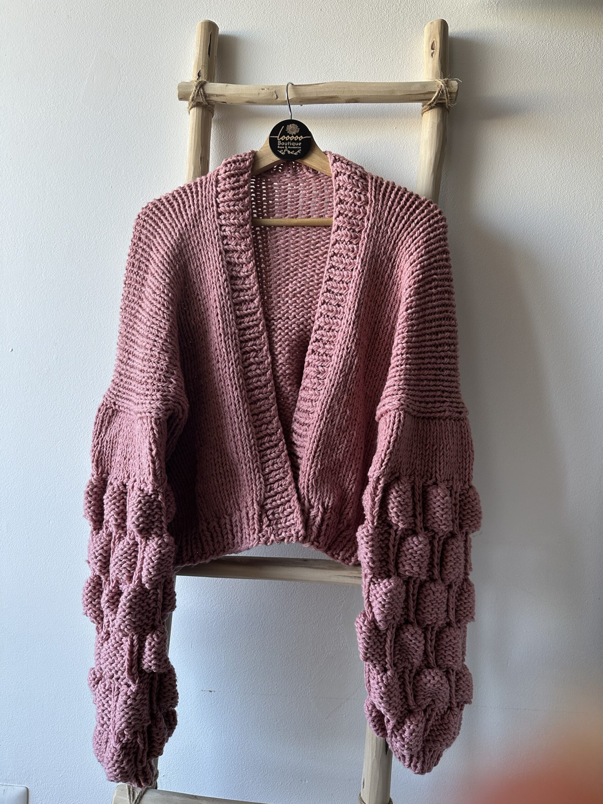 En material acrilico un cardigan burbuja bàsico, en rosa palo que combina con todas las estaciones (solo disponible en color rosa palo)