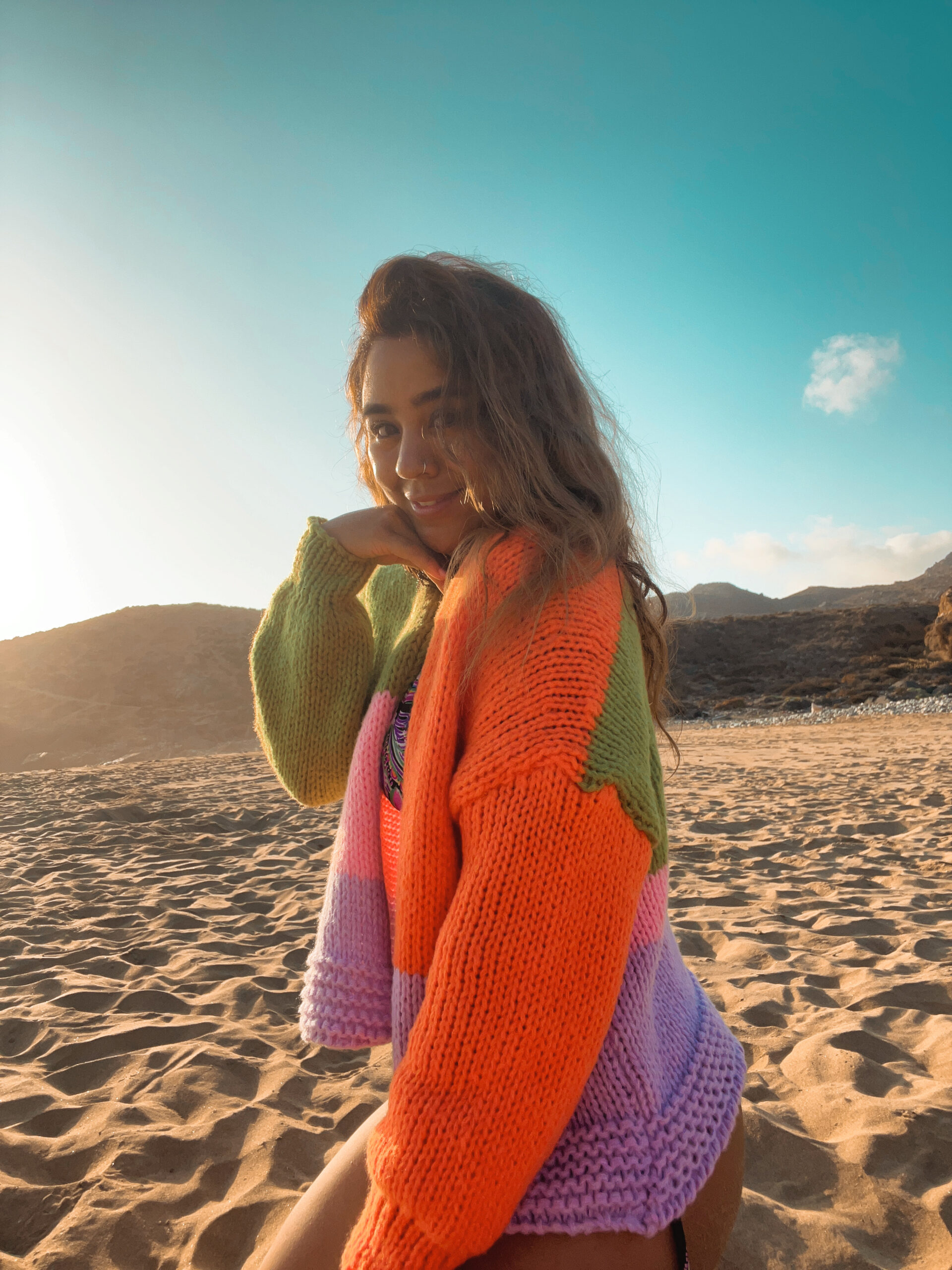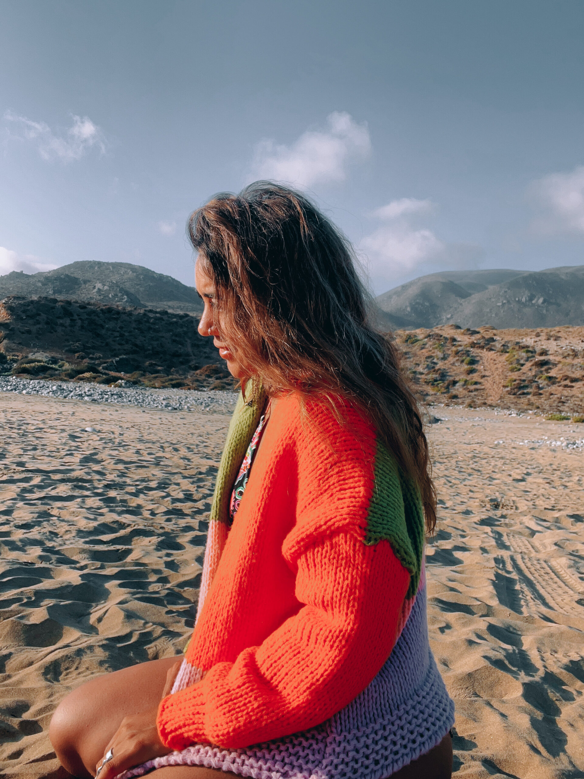 Un cardigan alegre de colores veraniegos, unico disponible en talla ideal para xs a L. hecho en maquinaria textil.