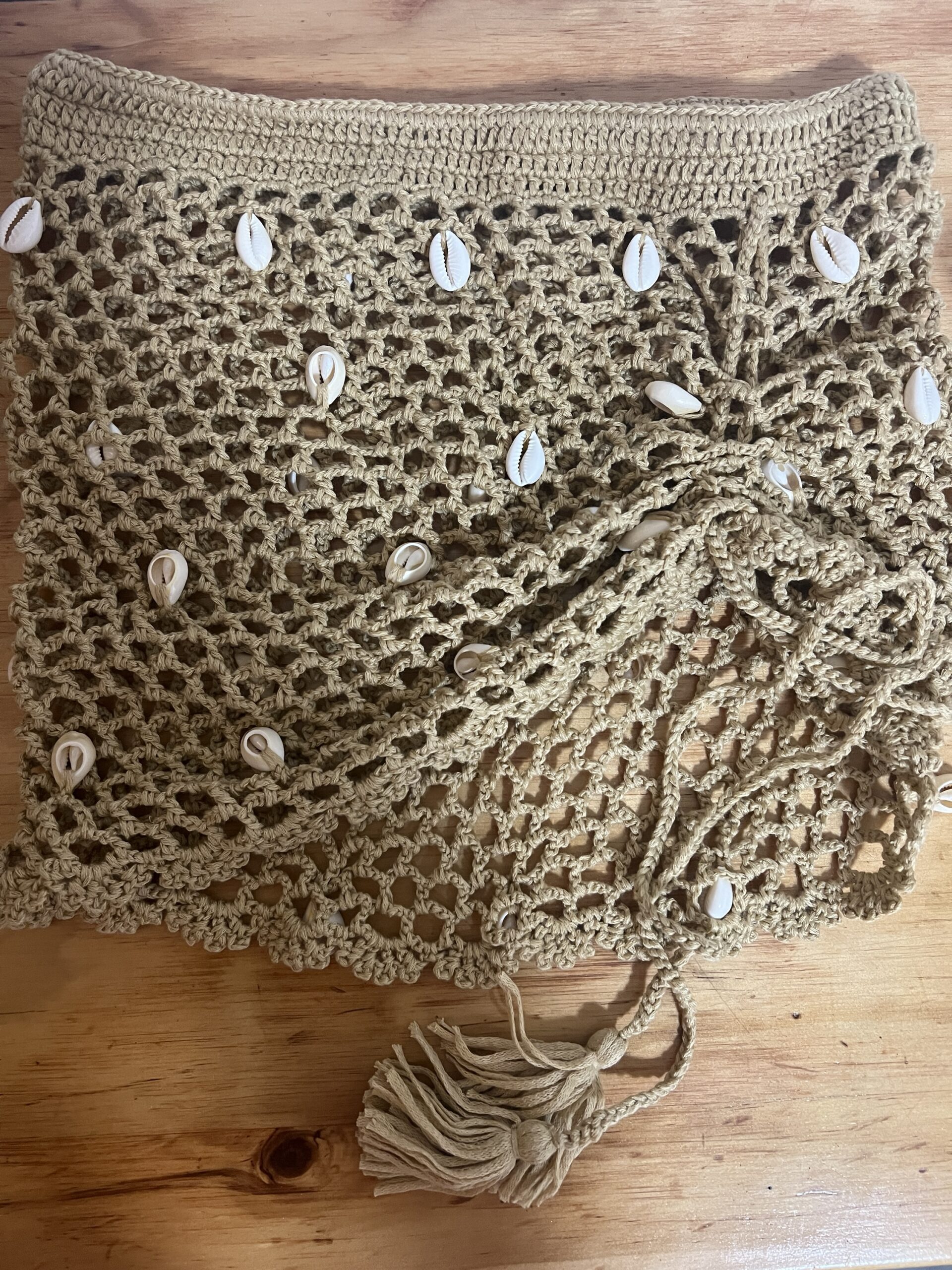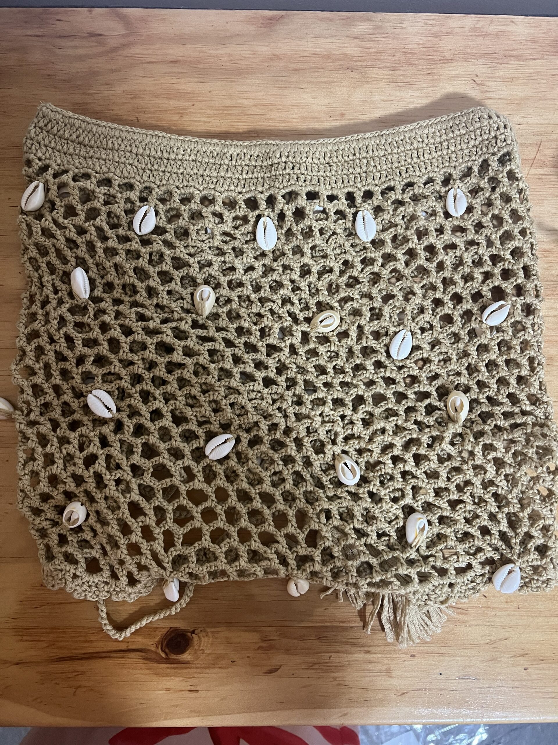 Una sexy falda con red e incrustaciones de conchas naturales para tu bikini.