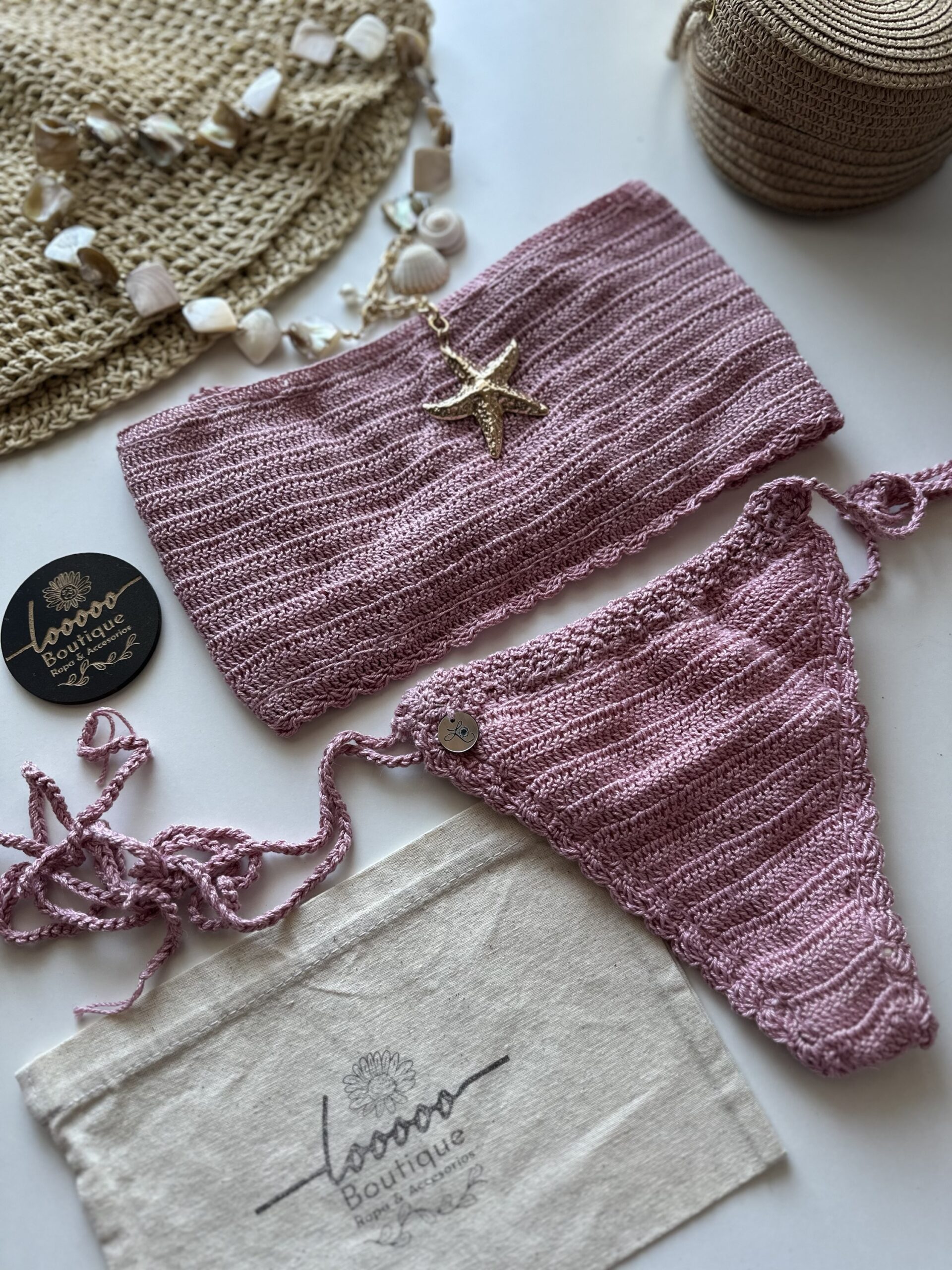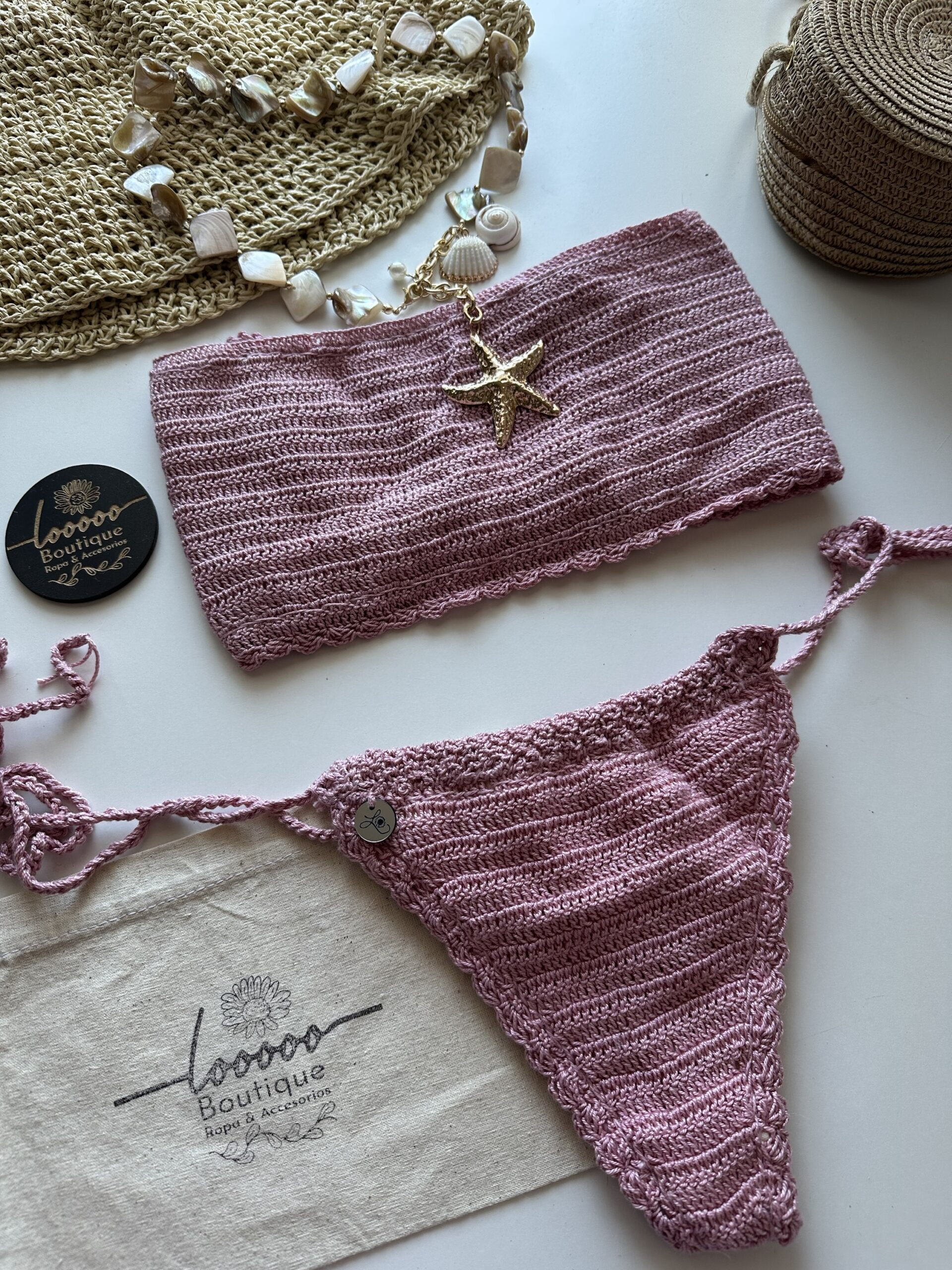 Un sexy bikini strapless con calzón estilo tanga, forrado en su interior y con algodón mercerizado. (Elegir un calzón)