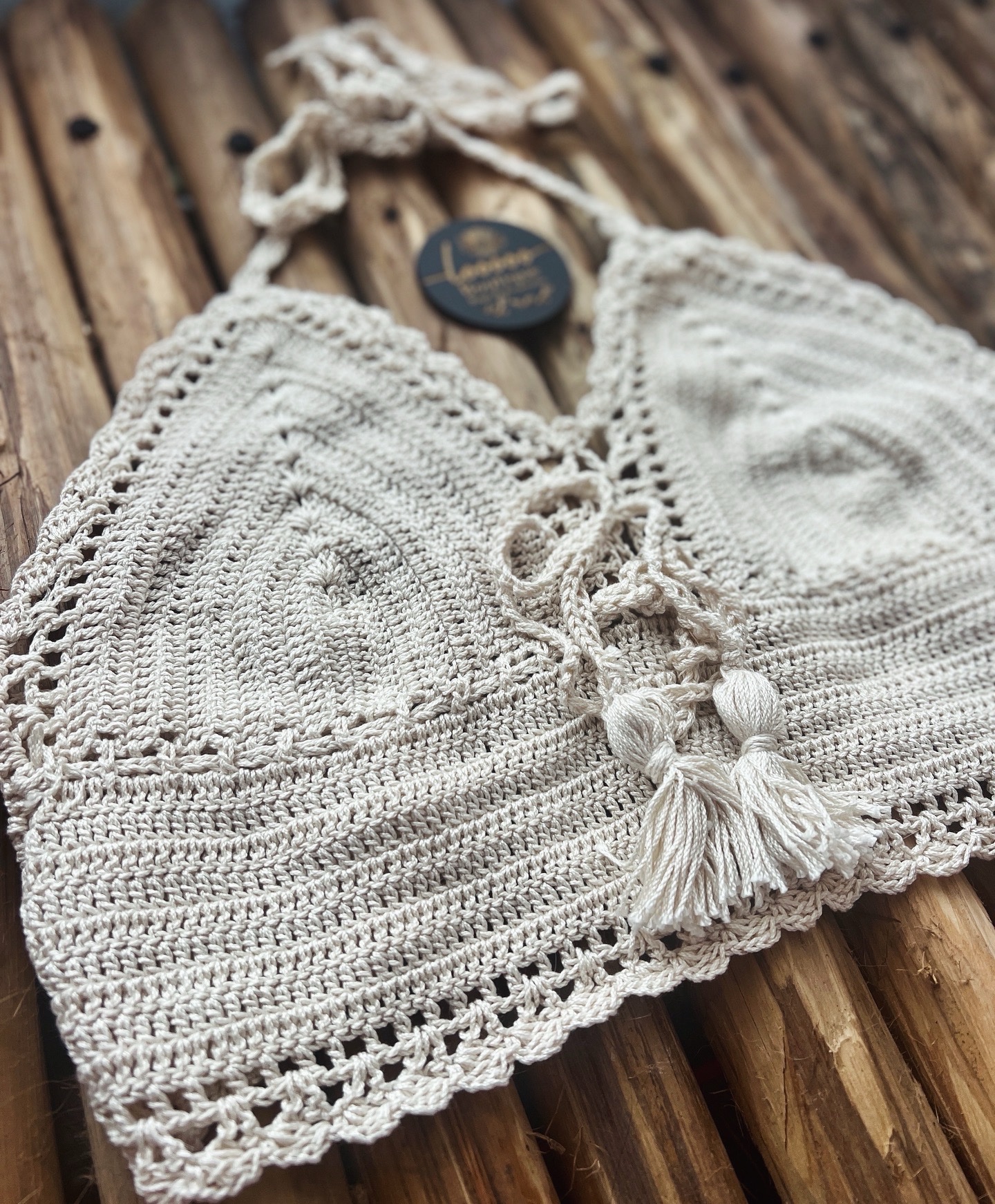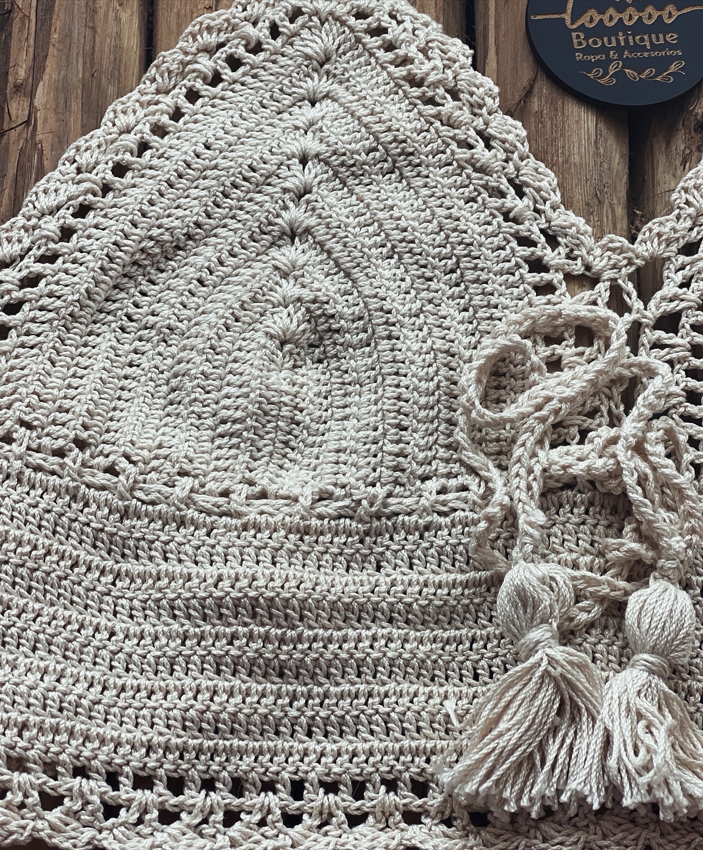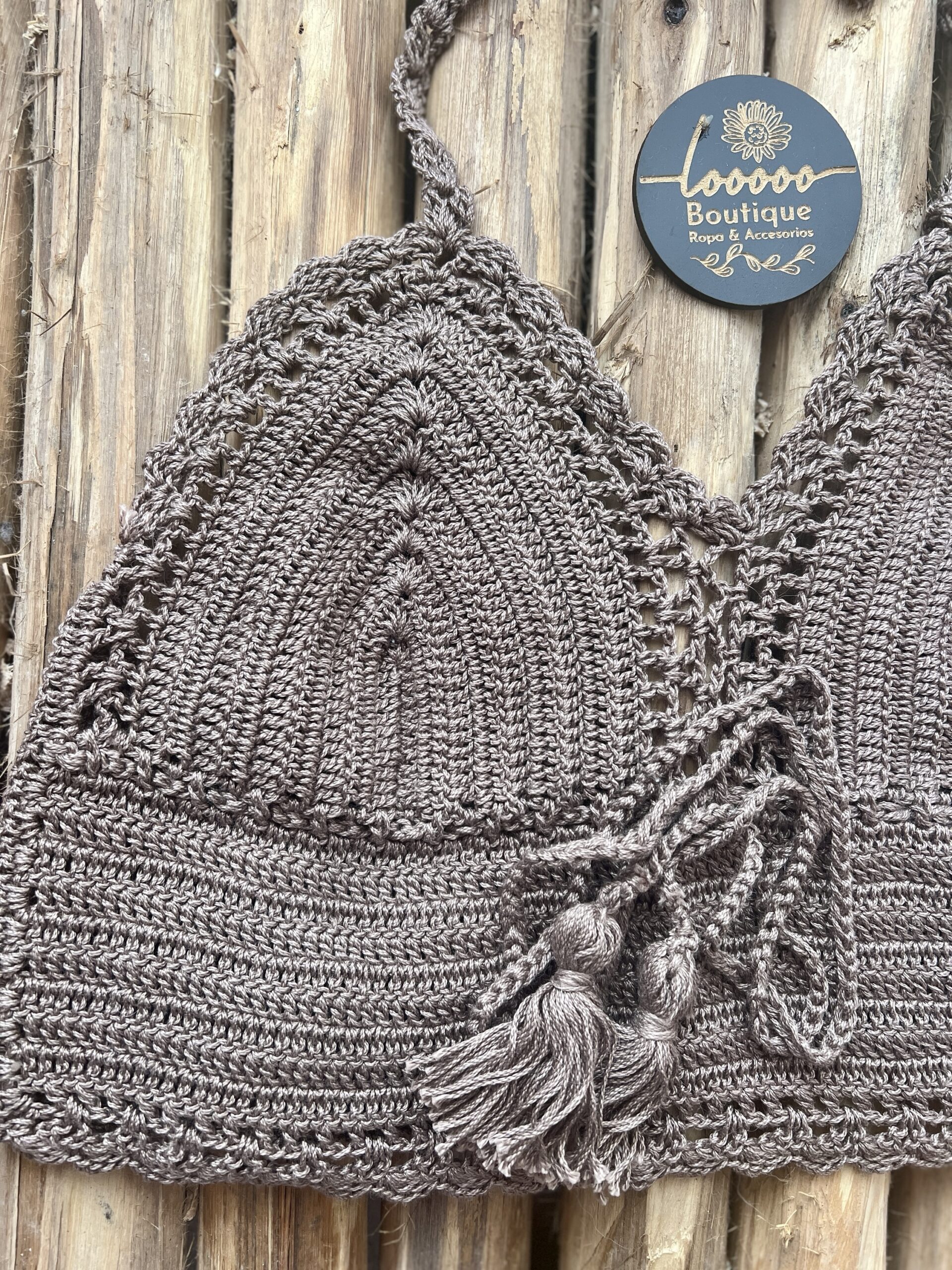 Un top basico con borlas en algodòn mercerizado. Con lazo ajustable en espalda y cuello.
