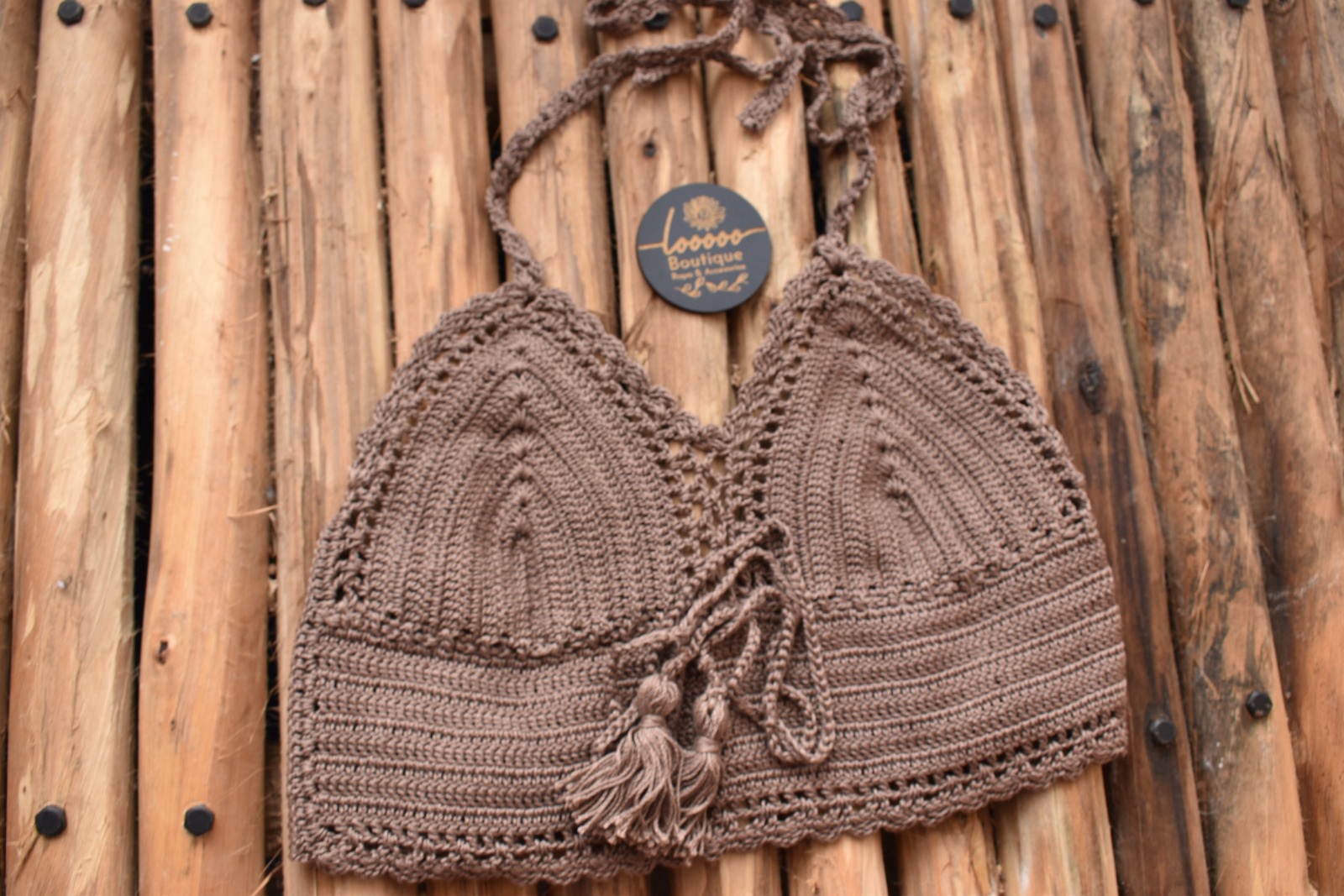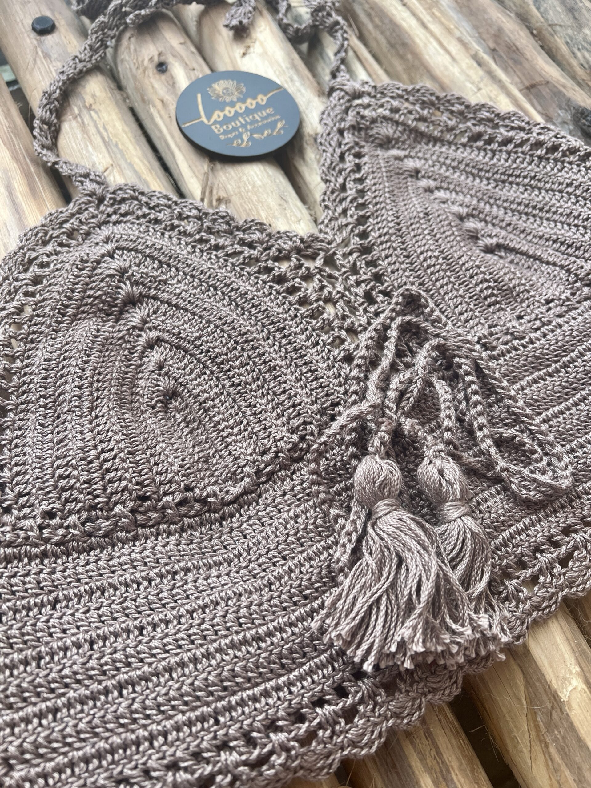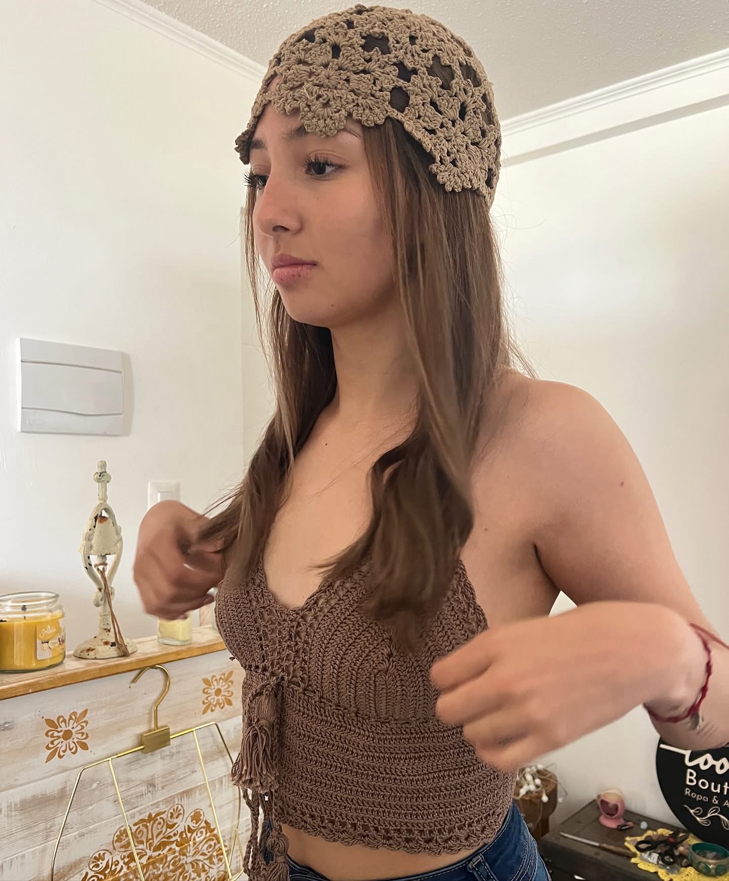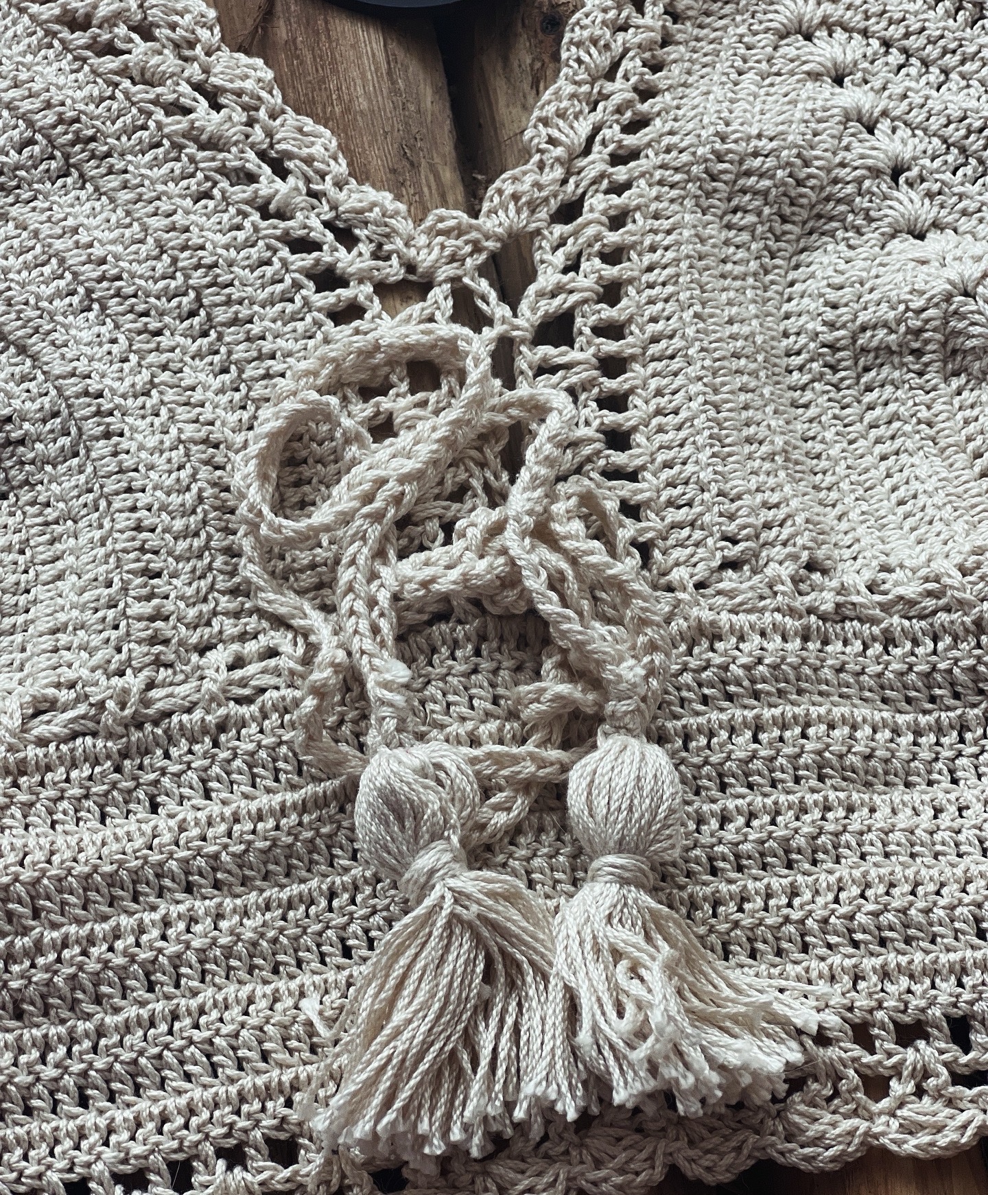 Un top basico con borlas en algodòn mercerizado. Con lazo ajustable en espalda y cuello.