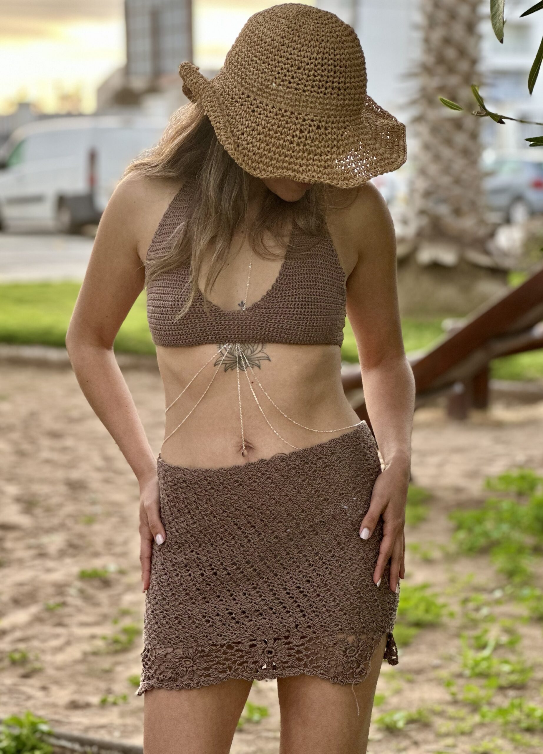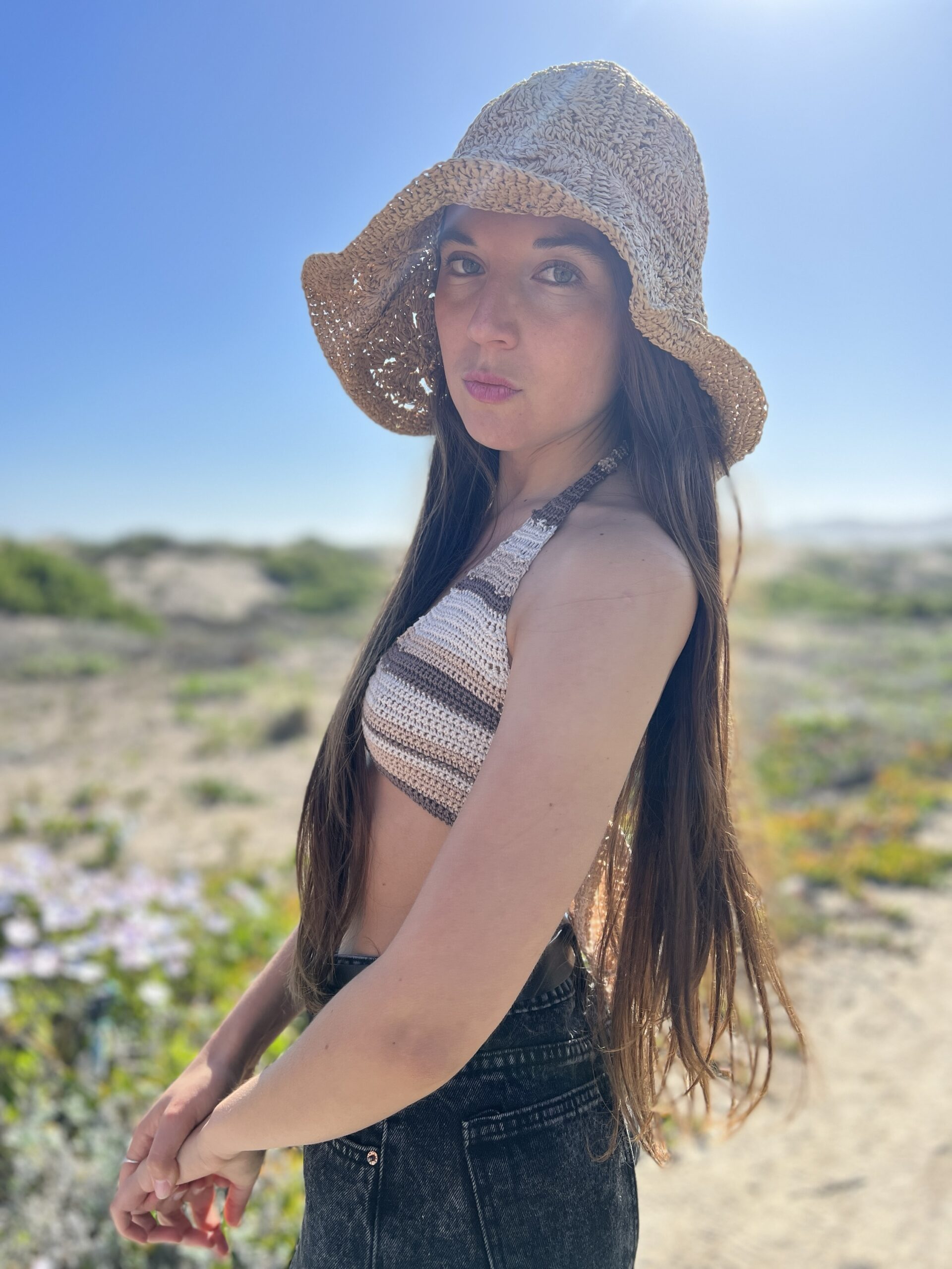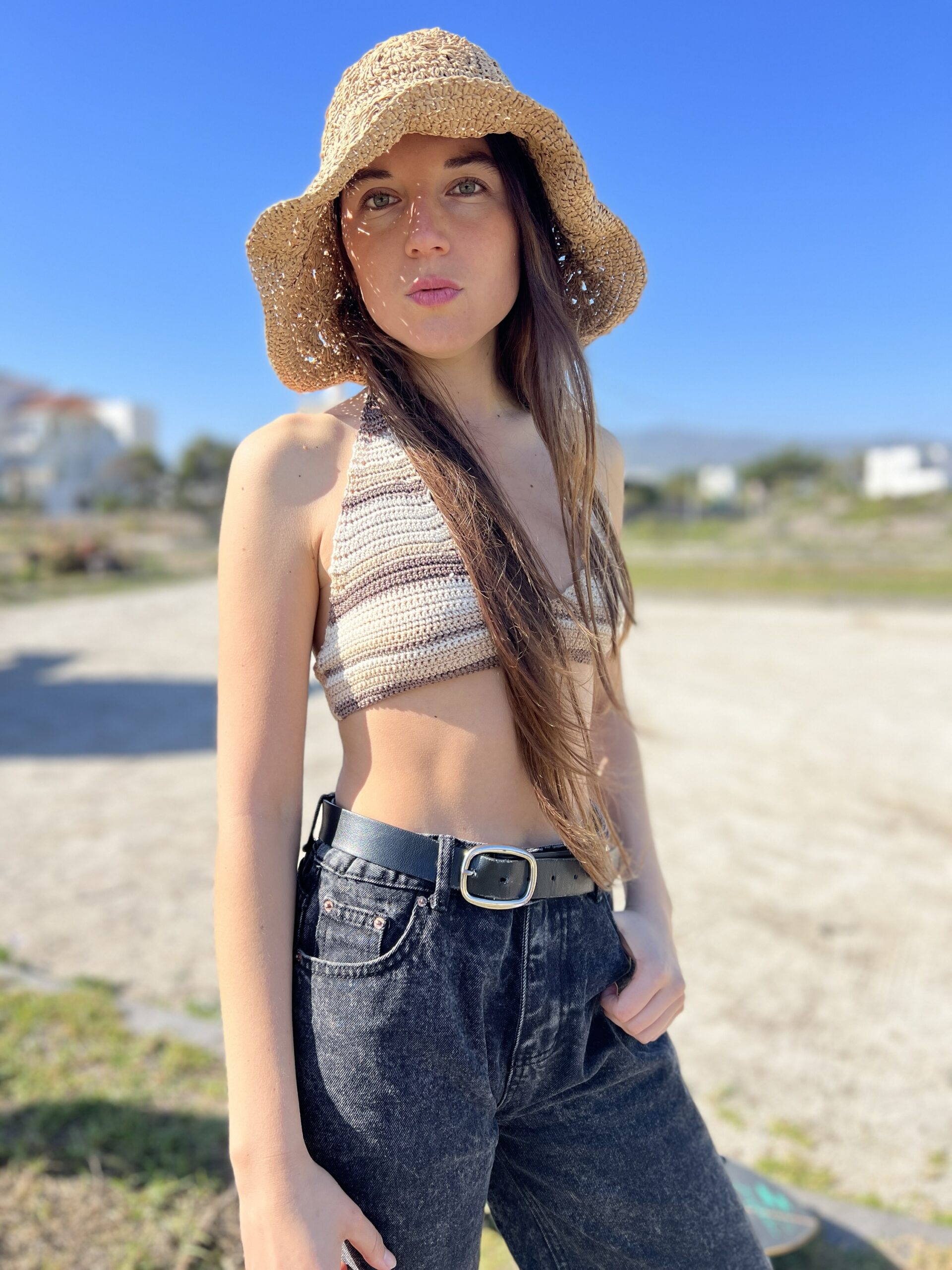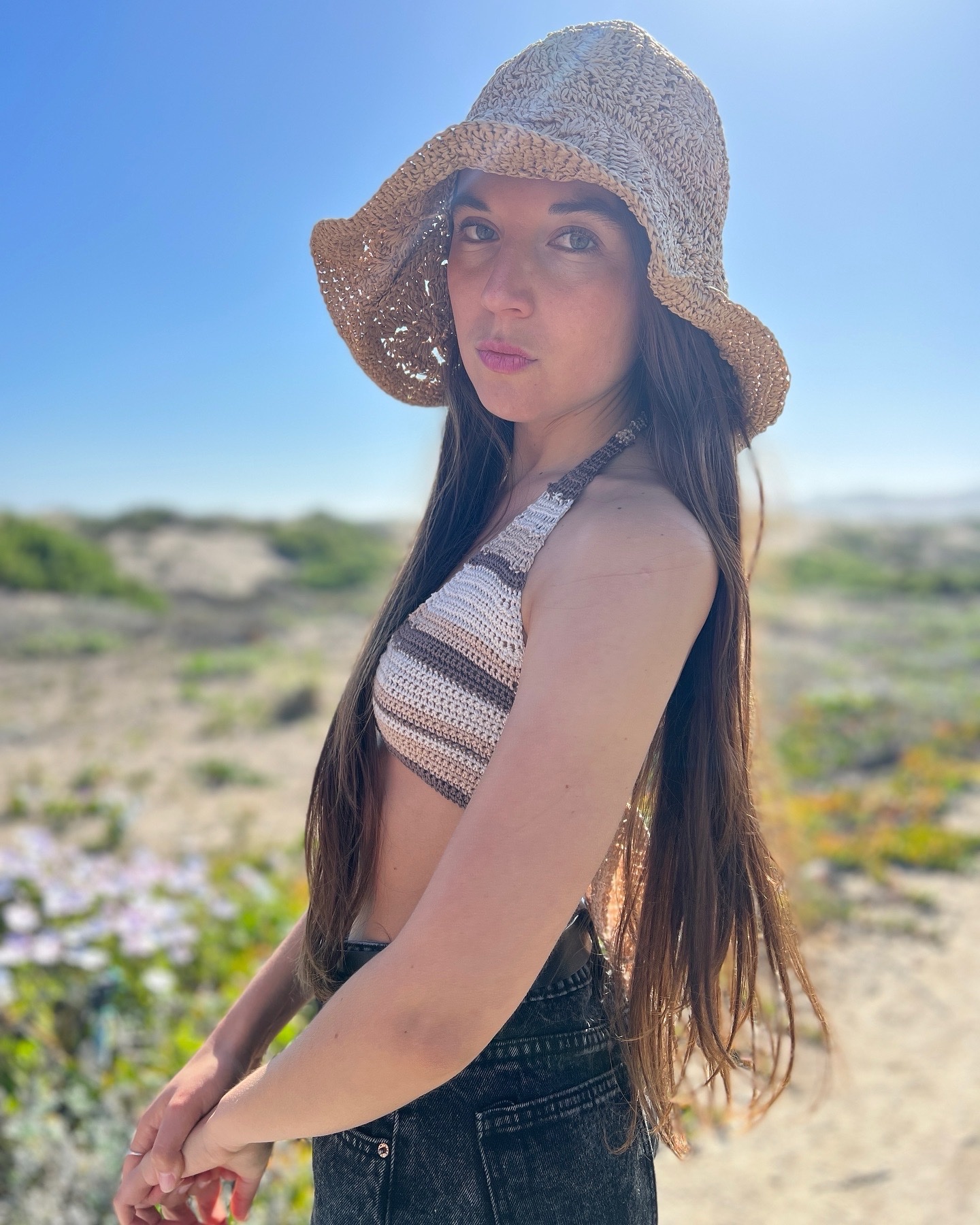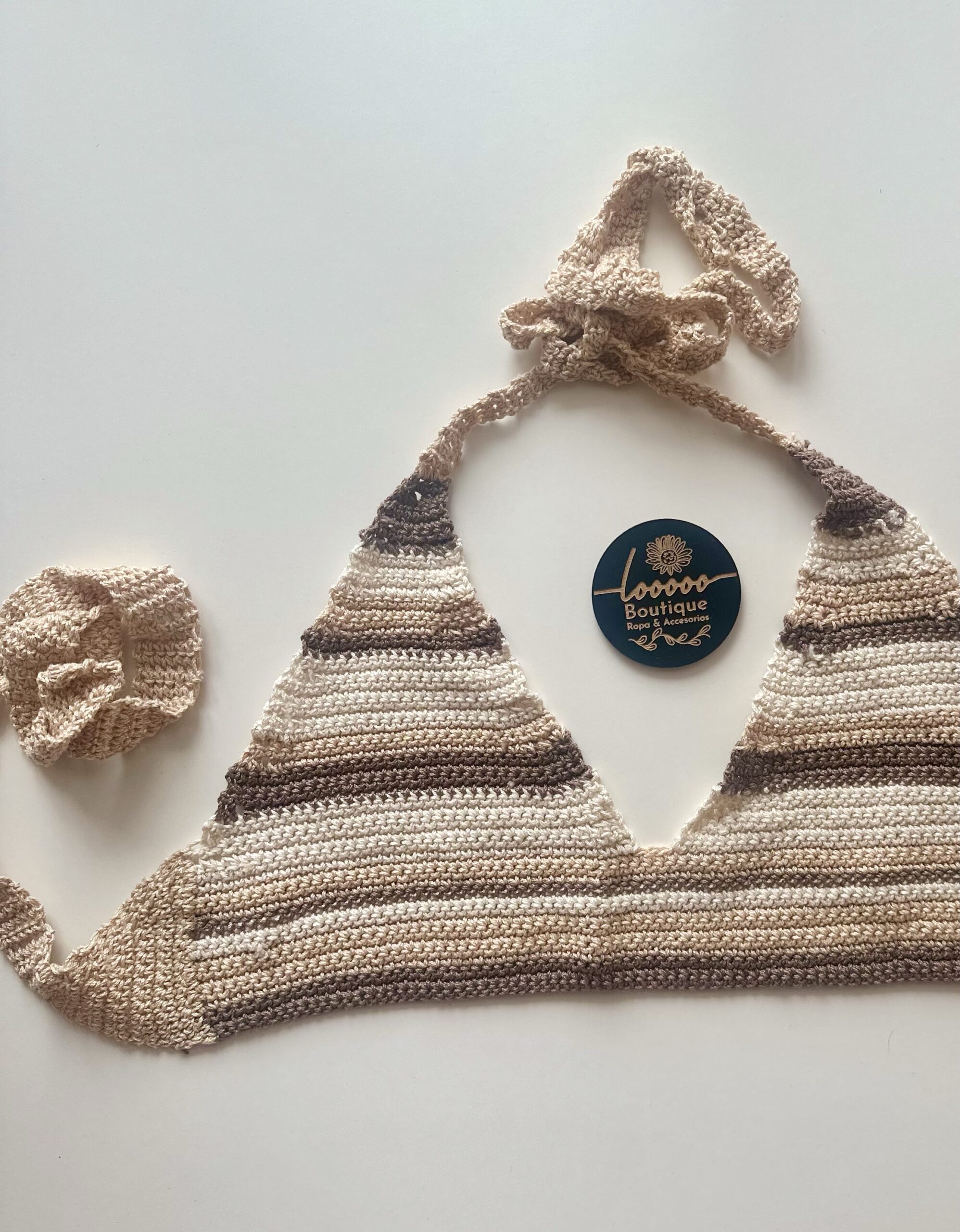 Topcrop/ pero con lazo ajustable en cuello y espalda.